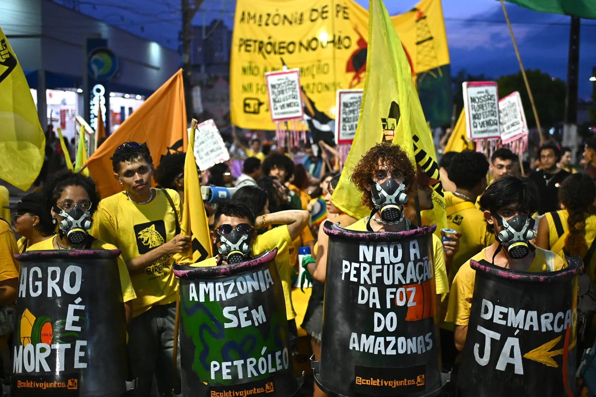 Além de gritos contra a exploração de petróleo, os manifestantes entoaram palavras de ordem contra o governo Lula por promover a perfuração na margem equatorial do Rio Amazonas. Era possível ver símbolos de partidos de esquerda, como o PSOL, entre os elementos que protestavam.