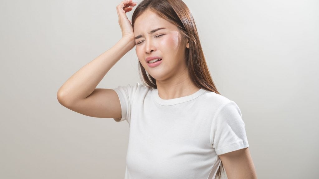 Mulher asiática tonta com a mão na cabeça / Crédito: Kmpzzz (Shutterstock/reprodução)