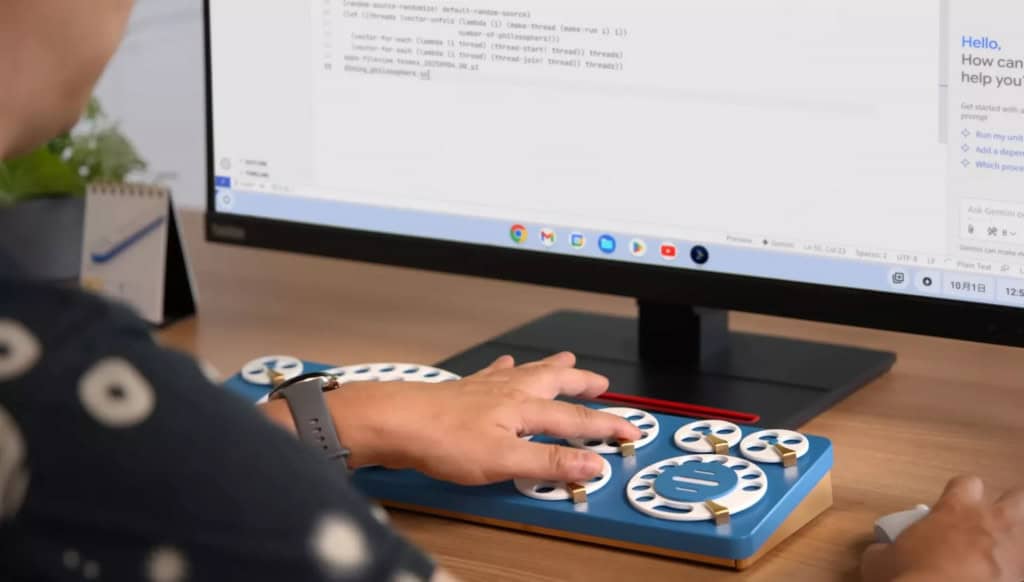 Novo teclado criado pelo Google Japão utiliza caracteres alfanuméricos e funções dispostas em novo mostradores circulares. Imagem: Divulgação/Google Japão