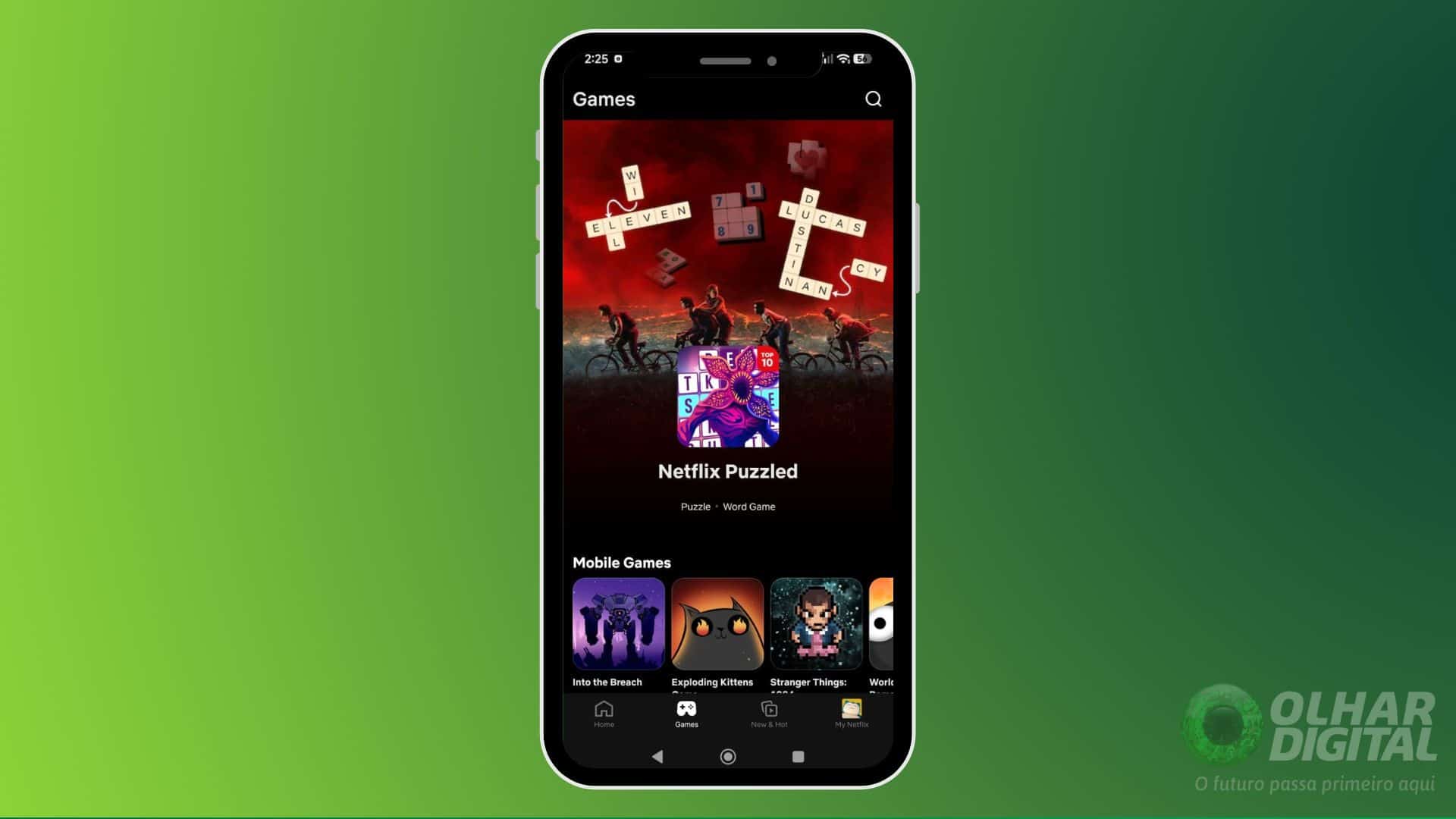 - Abra o aplicativo da Netflix e acesse a seção “Games”;