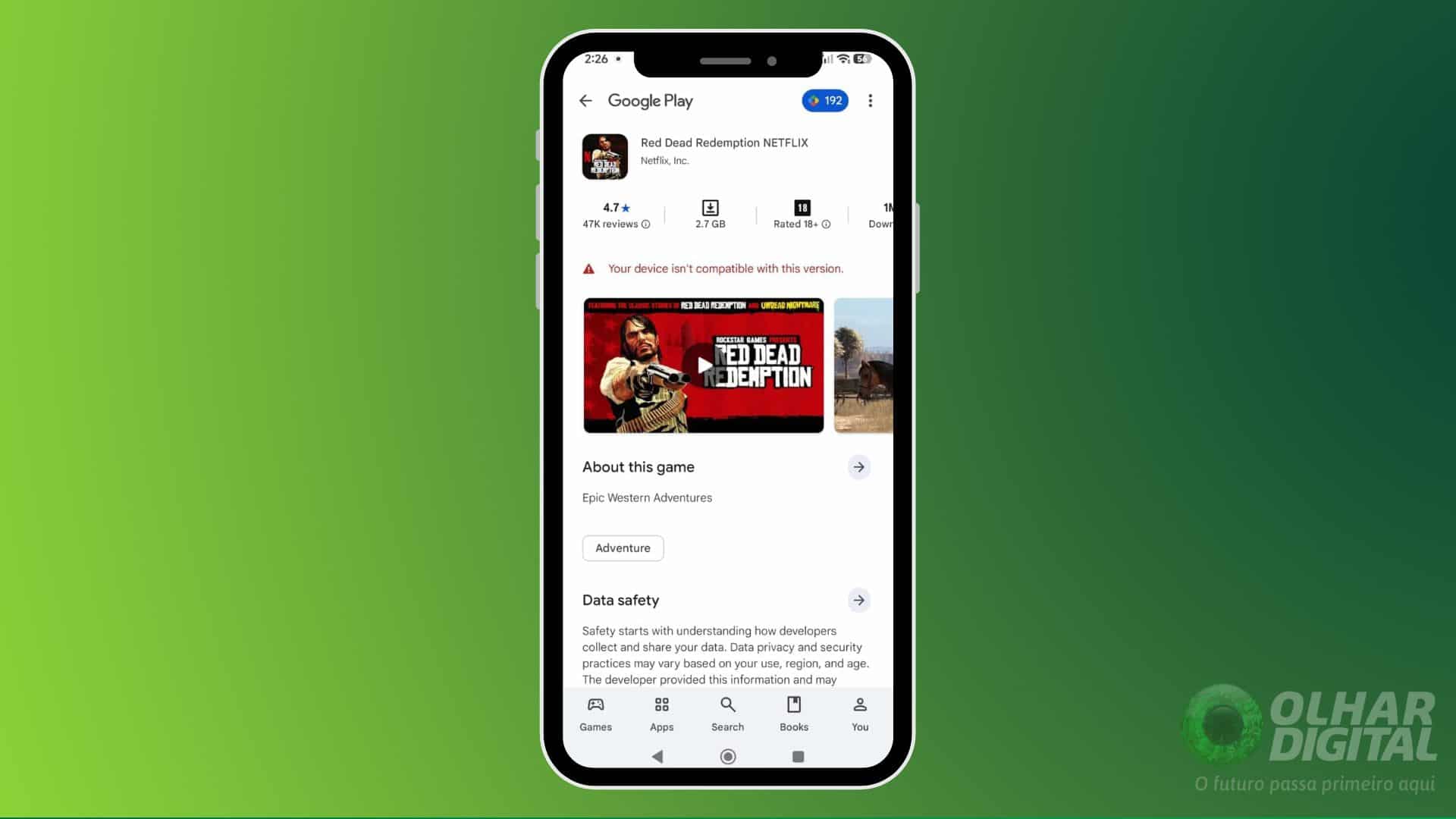 Caso seu celular for compatível, você deve conseguir baixar o jogo e fazer a instalação. Depois, abra Red Dead Redemption pelo ícone no celular e, quando solicitado, faça login com sua conta Netflix ativa. Isso é necessário para validar que você tem direito ao acesso gratuito, já que o jogo não aceita contas sem assinatura ou desatualizadas;