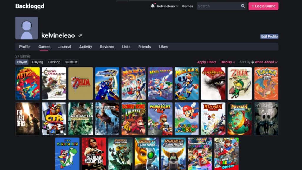 - Backloggery: para acompanhar o andamento dos jogos e criar metas de gameplay.
