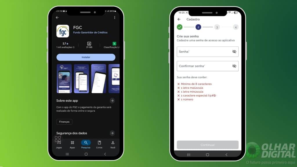 - Baixe o app do FGC na loja de aplicativos do seu smartphone (Android ou iOS).