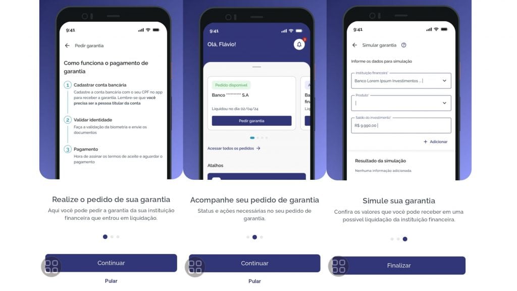 Essa garantia não é automática. O investidor precisa confirmar seus dados, validar biometria, cadastrar uma conta bancária ativa e assinar termo de sub-rogação diretamente no app do FGC.