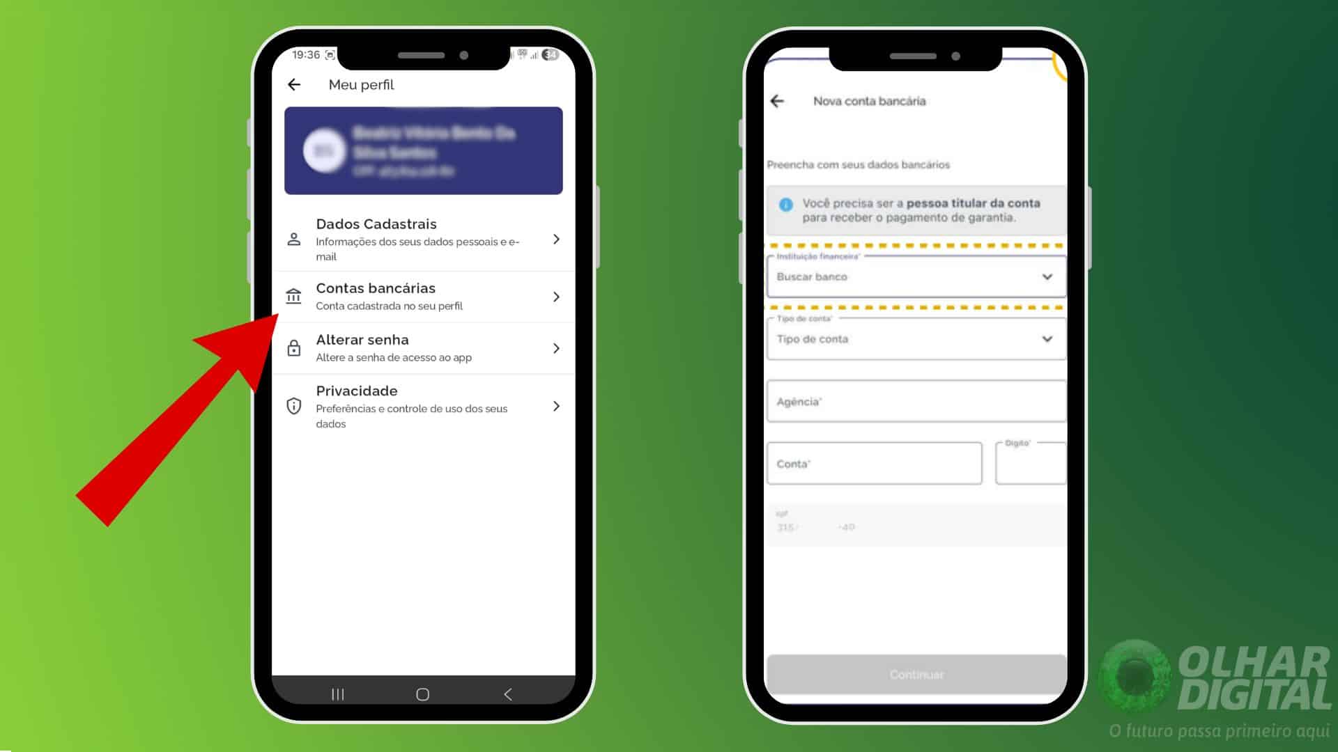 - Cadastre a conta bancária para receber o pagamento
