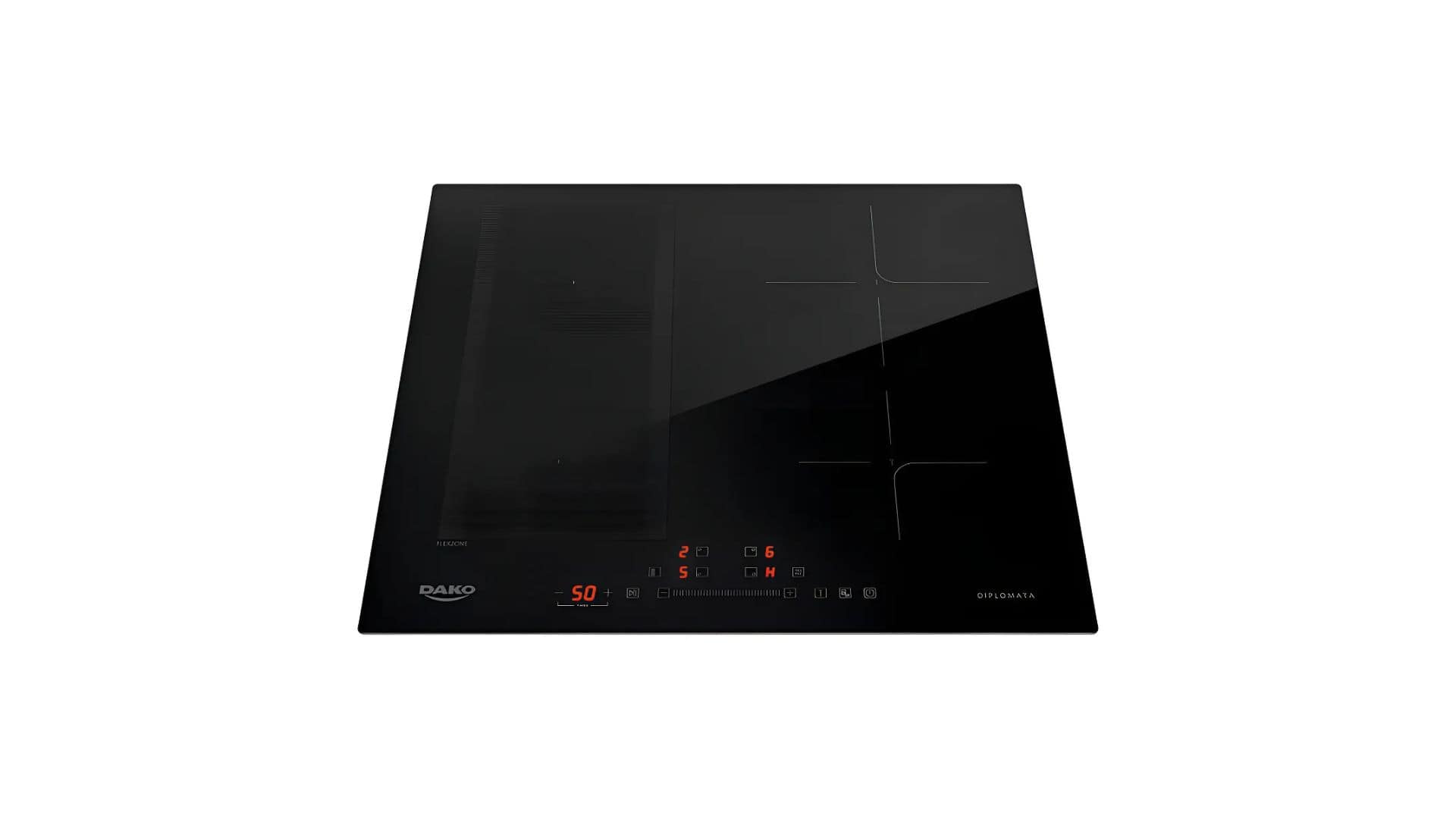 O Cooktop de Indução 4 Bocas Dako Diplomata trabalha com quatro pontos de aquecimento distribuídos de forma tradicional, incluindo uma zona flexível que une duas áreas em um único espaço. Esse recurso permite acomodar recipientes maiores ou mais longos, aproveitando a superfície de maneira diferente dependendo do tipo de preparo.