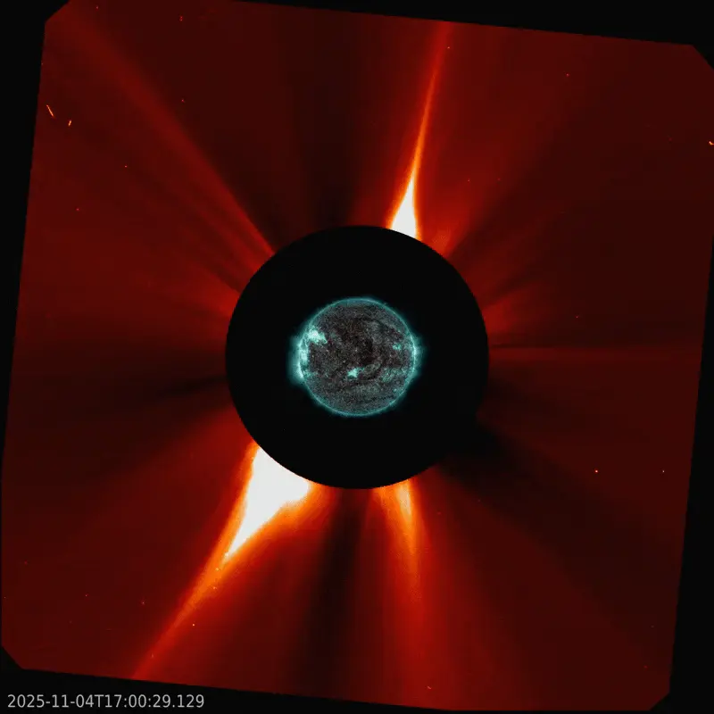 Ambas as erupções lançaram para o espaço enormes bolhas de plasma e campos magnéticos conhecidas como ejeções de massa coronal (CMEs). Nenhuma dessas CMEs está diretamente voltada para a Terra, mas suas bordas podem se misturar a um fluxo rápido de vento solar nos próximos dias.